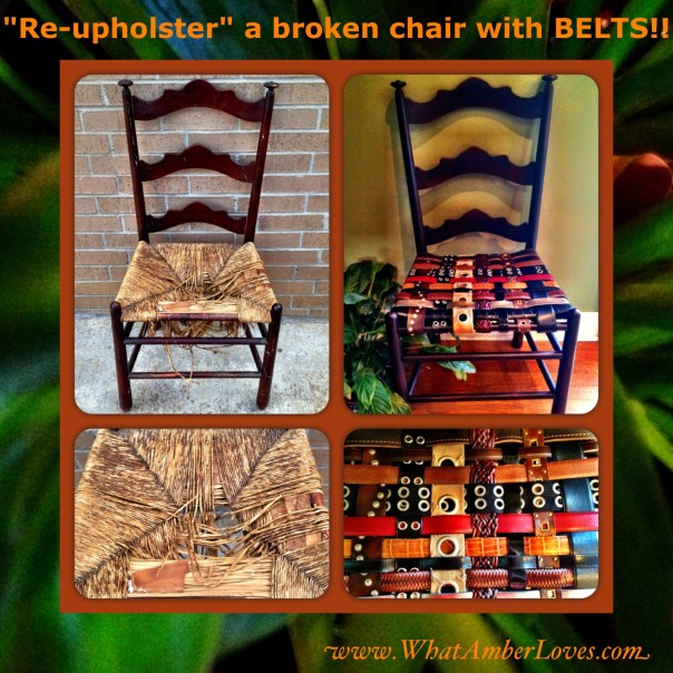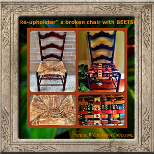Well, the answer was easy. See, several years ago, when our oldest daughter was a toddler, my mother gave us a small, child-size chair that had been hers when she was a child. It had a seat that was woven in rush (similar to caning) that was starting to fray and had discolored. I wanted to keep the chair. I decided to tackle the re-seating project myself using alternative materials. I considered fabric, neckties, and more, but ultimately, I was afraid that they wouldn’t be durable enough, then I thought of belts! They were perfect! Made of thick, heavy duty leather, if woven together, they would provide plenty of support, durability, and would be easy to clean if there was a spill. So, that’s what I used. Belts.