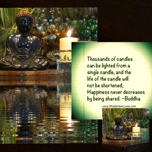 â˘Â   vignette on one of my tabletops that includes a Buddha and quote.