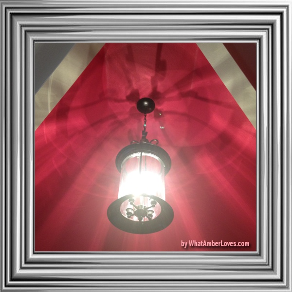 Architecturally, it is a really interesting room with neat angles on the ceiling, and it is really big. In her room, she has a full size bed, a dresser, a vanity, an armoire, a desk, an armchair, a neat silver chest, and room to spare. Seriously, it is a BIG room for a 10 year old girl, I think. One of my favorite features is that we moved a light fixture that was formerly in our foyer, spraypainted it black, and installed it in a way that it really shows off the ceiling angles with how it bounces light around through its beveled glass panels.