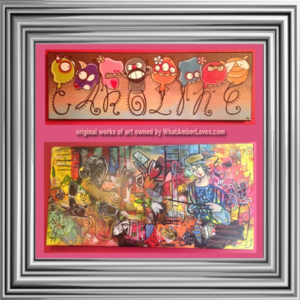 You may have noticed a few pieces of colorful art in a couple of pictures. They are original works of art, actual paintings, not prints. The one hanging above her vanity is HUGE. The pictures don’t really do justice to the fact that it is 6 ft x 3 ft. Big, right?! It is by a Canadian artist, Sarah Kinan. I bought it directly from the artist, online and she shipped it to us rolled. We built the frame and stretched it onto the frame. The second little name painting is by Veronique Perron. When I update this post with photos showing the vignettes and curtains, I’ll make sure that I add links to the artists…