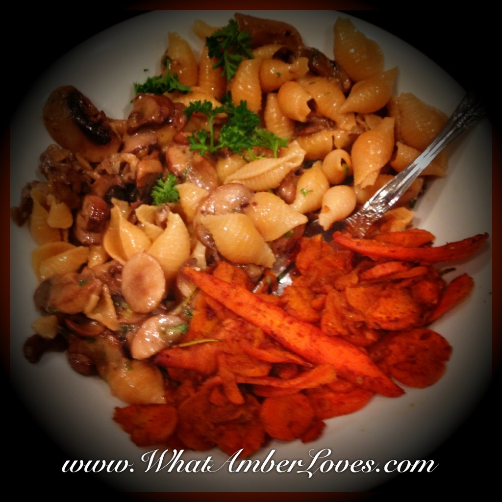 Tonight, our carrots were served beside Pasta&Mushrooms! Love!