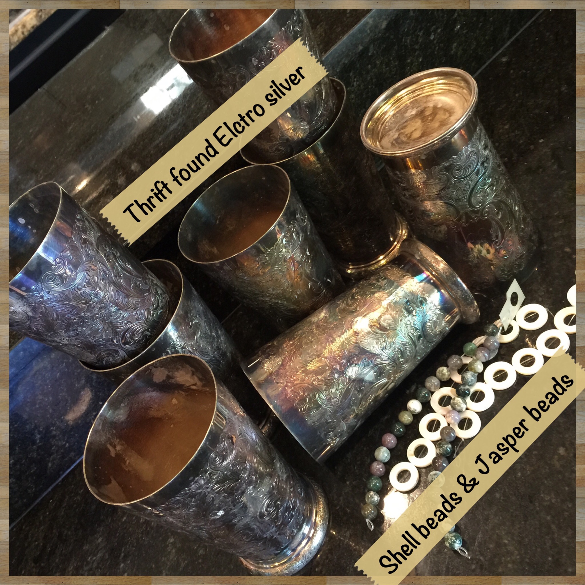 Recently, I arrived early, stood in line awaiting opening, and found another great deal at an Estate Sale, here in Little Rock, Arkansas! The deal: I found a set of eight (8) silver electroplated vessels, intended to be used for drinks. They were only $1 each, and I knew I needed to buy them, even though they were engraved with a “K” on two sides of every piece.