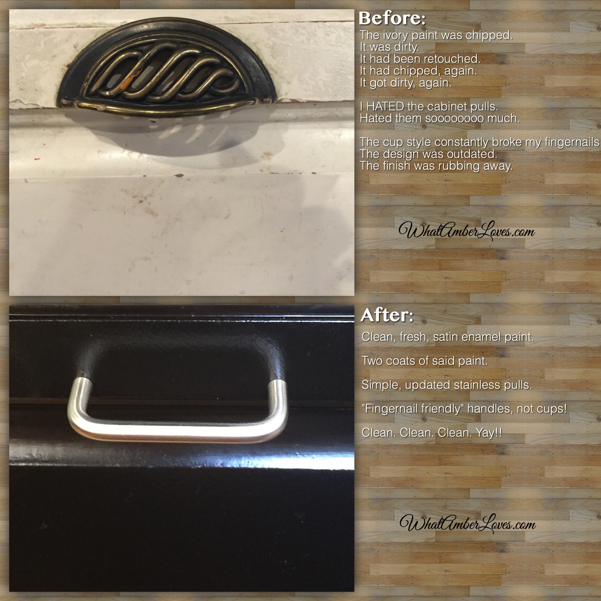 The construction of the ivory painted wood cabinets was sturdy, but the finish was worn.