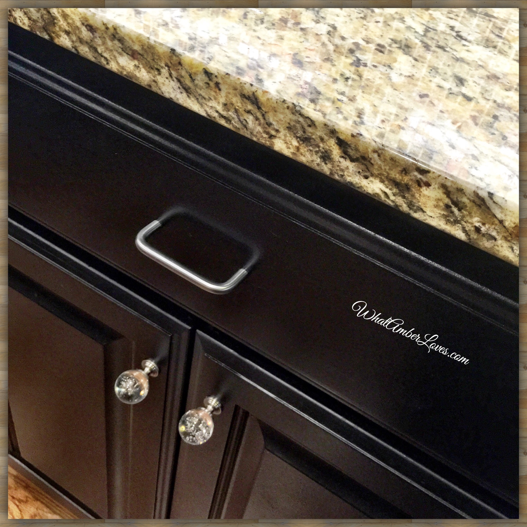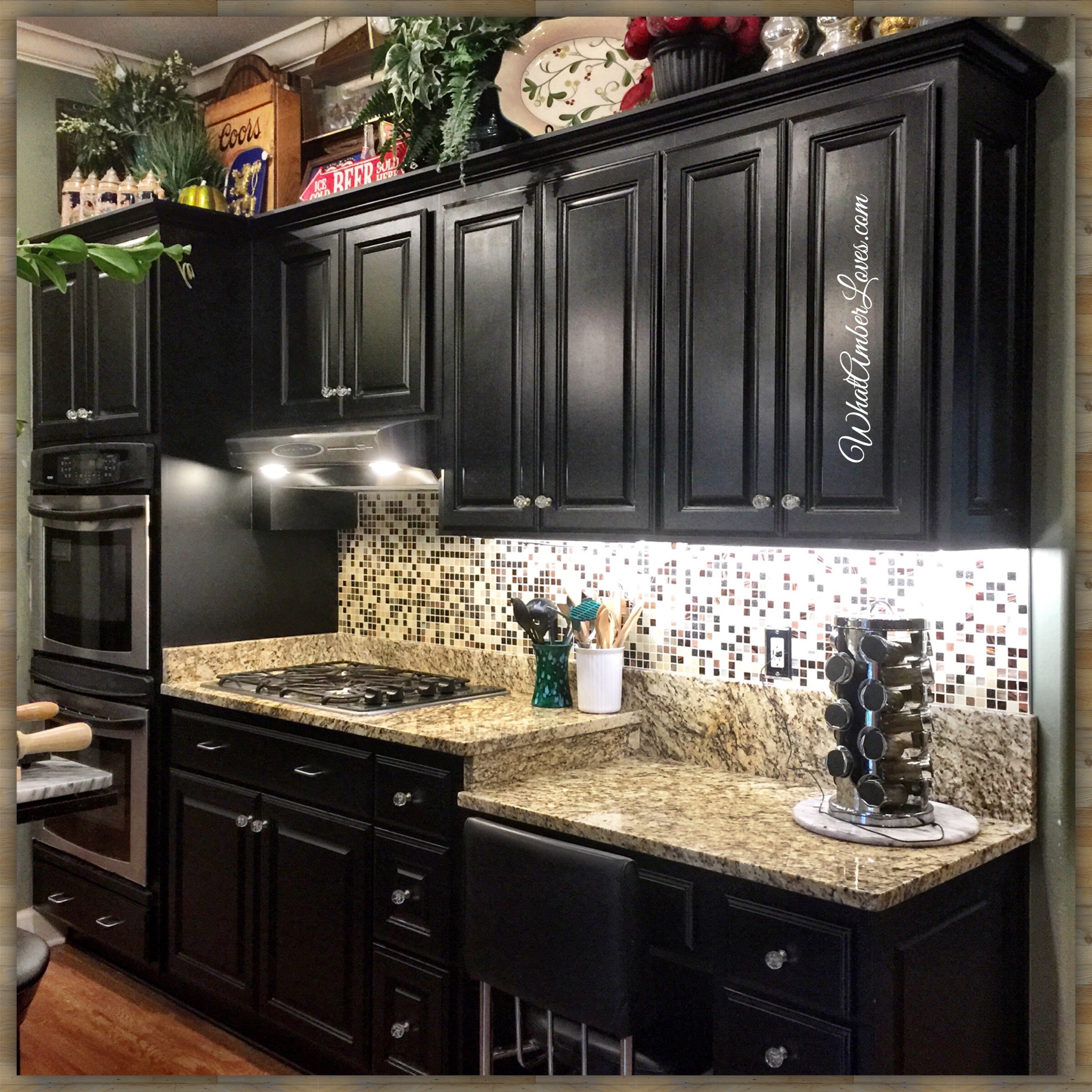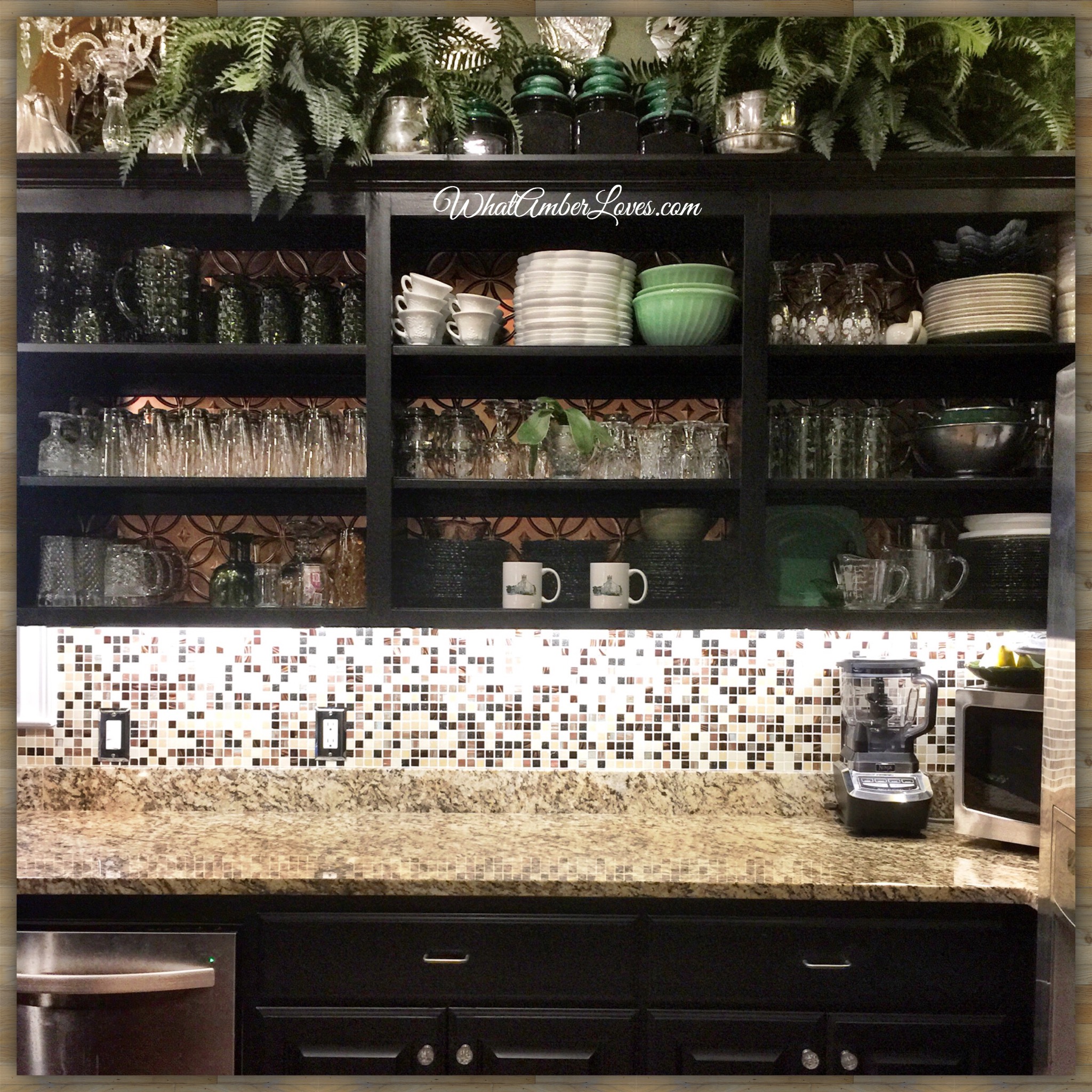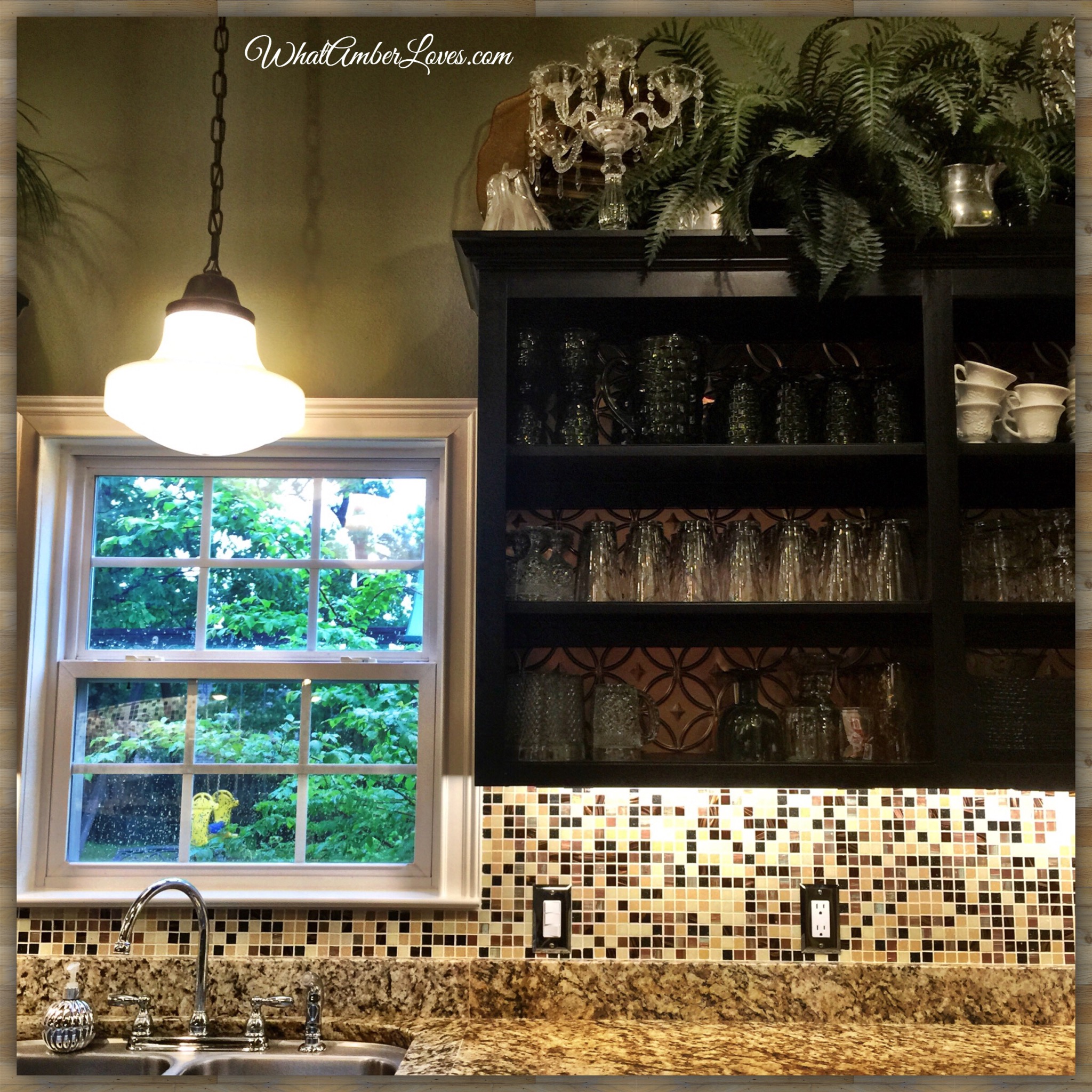 Last, but not least, we installed under cabinet l.e.d. lighting and completed the DIY tile glass backsplash! I love how they glitter in the light!