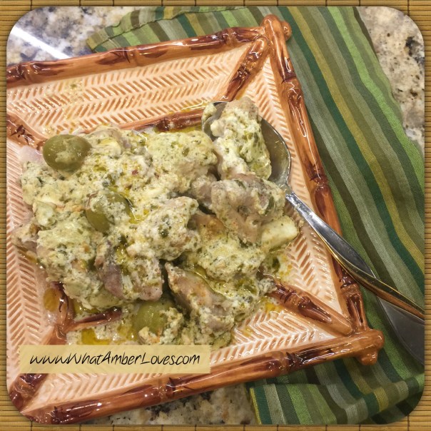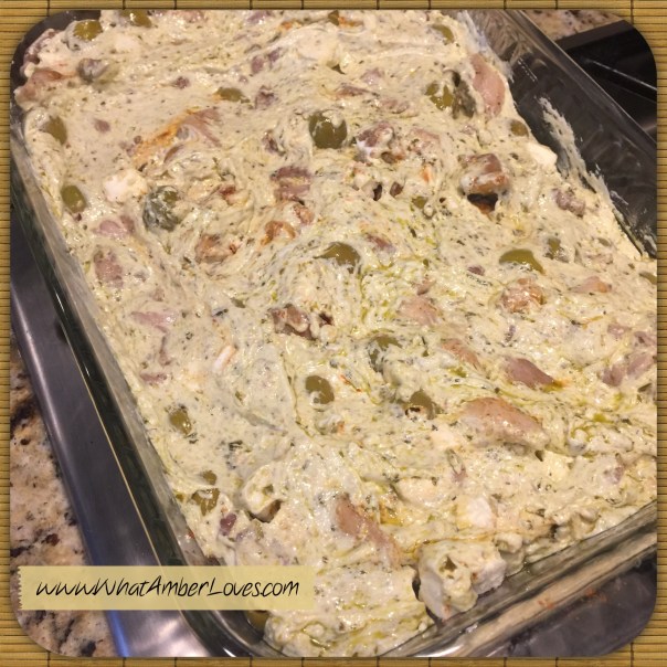 Chicken, Olive, Feta, Pesto, SourCream Bake