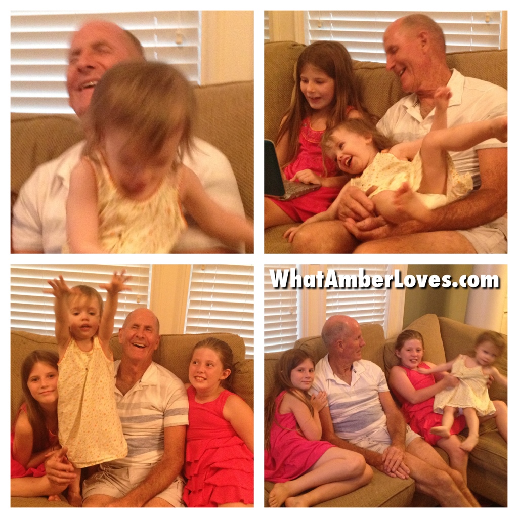 The reason I made them today? Mitch requested them. His dad joined us for dinner. Since it is summertime and I usually only make this dish in the winter, I just served it with a salad and iced tea. Brownies for dessert were made by our middle daughter. Love. Here is a pic of Mitch’s dad and our girls, his granddaughters. Love.