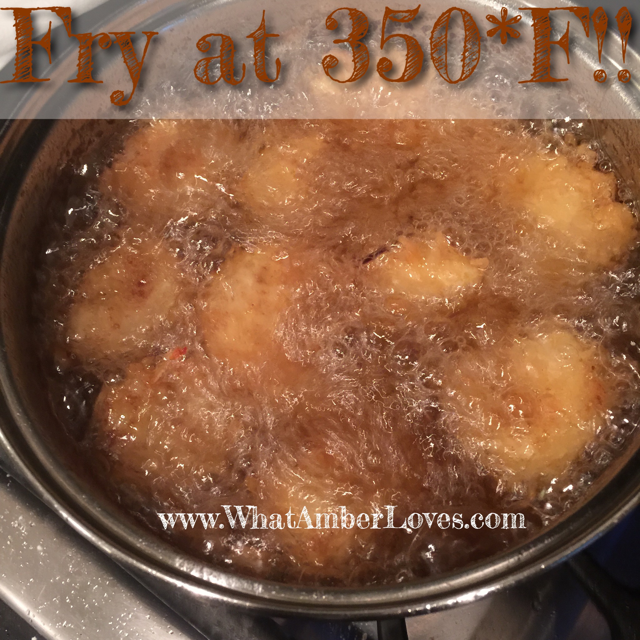 The temp of the oil is important. If it’s not hot enough, your batter will be greasy and they’ll take longer to cook. If your oil is too hot, your batter, especially coconut will burn before the shrimp cooks through to the middle.